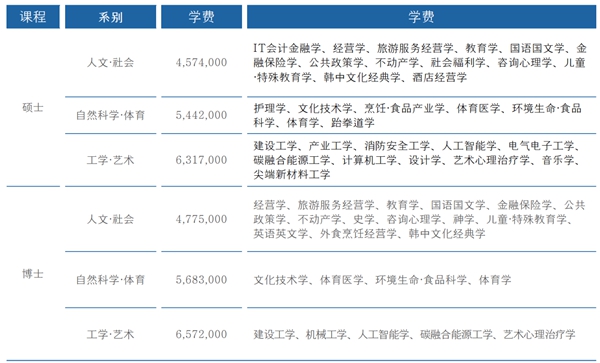 碩士:經營學、教育學、人工智能學、設計學、藝術心理治療學、體育學