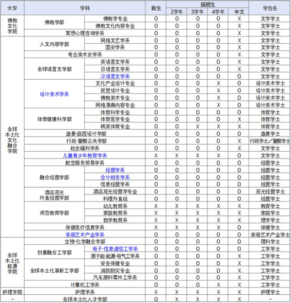※已開設中文授課課程的專業(漢語言文學系、設計美術學系、兒童青少年教育學系、經營學系、會計稅務學系、美容藝術產業學系、電子·信息通信工學系)外,其他希望開設中文授課課程的專業,須在首次招生時達到20名以上報名人數,方可開設中文授課課程。