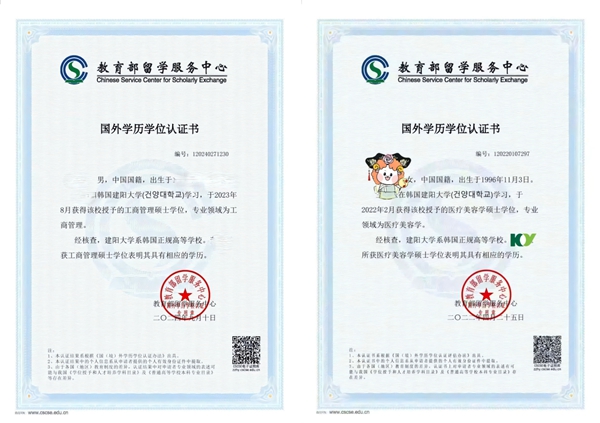 中國留學網是中國留學領域唯一官方網站,所有韓國正規大學均在中國留學網公示查詢。留學學歷在經過認証后,回國就業、保險、職稱、落戶等很多方面發揮和國內大學學位同等效力。