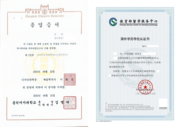 同德女子大學畢業証及中留服國外學歷學位認証書樣本
