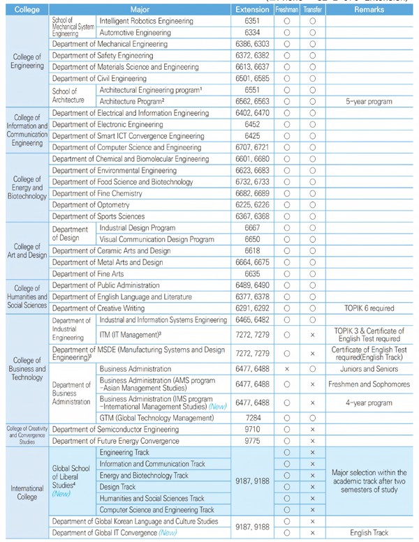 韓國首爾科技大學本科招生專業