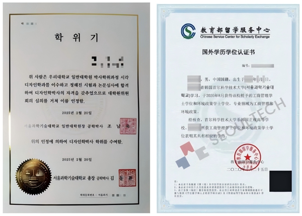 首爾科技大學學位証及中留服國外學歷學位認証書樣本