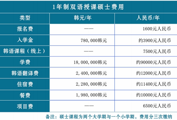 韓國大邱韓醫大學1年制雙語授課碩士留學費用