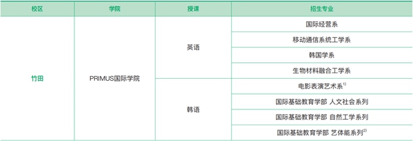 韓國檀國大學PRIMUS國際學院招生專業