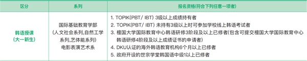 韓國檀國大學天安校區招生專業