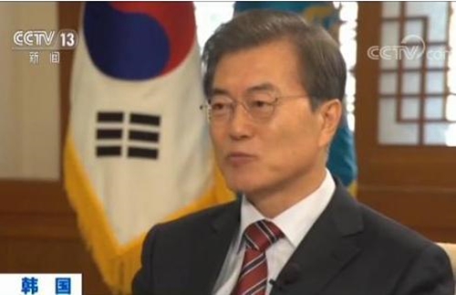 央视记者水均益:总统先生,我们其实知道您和包括韩国政府,以及官员一贯在这个问题上的一系列的态度。其中包括韩国政府将不会追加“萨德”系统,也不会加入美国的反导系统,也不会去发展美日韩的军事同盟,同时您也表达了“萨德”系统不会损害到中方的利益。但是能不能请总统先生面对着我们摄像机,告诉中国的观众,韩国政府在这个问题上的立场,以及下一步我们需要努力的方向。