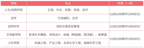 韩国朝鲜大学1年制双语授课专升本开设专业