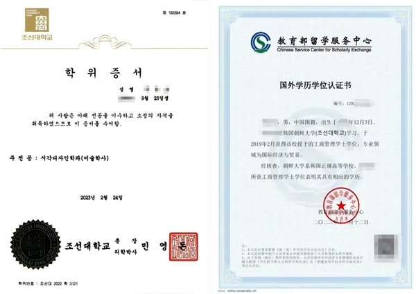 朝鲜大学学位证书及中留服国外学历学位认证书样本